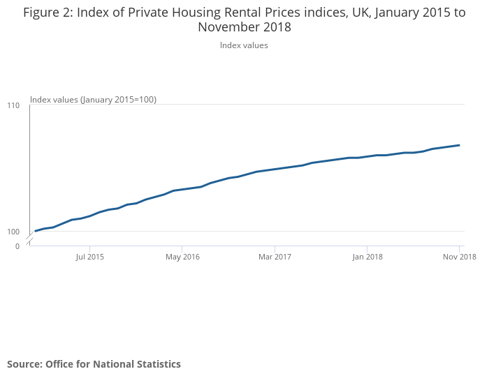 Focusing on the long-term trend, between January 2015 and November 2018, private rental prices in the UK increased by 6.8% (Figure 2).