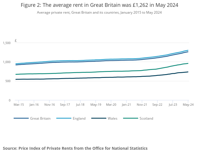 Figure 2: The average rent in Great Britain was £1,262 in May 2024