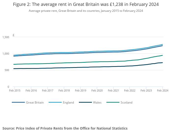 Figure 2: The average rent in Great Britain was £1,238 in February 2024