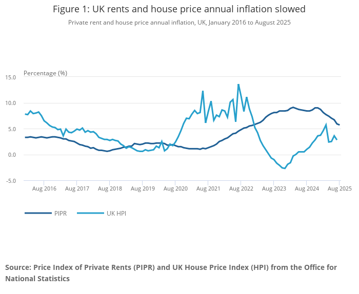 Office for National Statistics (ONS), released 17 September 2025, ONS website, statistical bulletin, Private rent and house prices, UK: September 2025