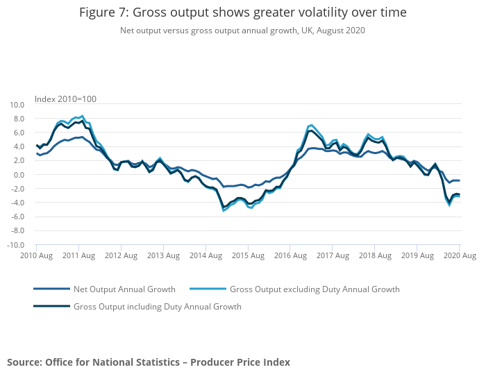 November 2020 will see the first publication of the producer price inflation figures on a gross basis; we encourage the use of gross sector indices where available, as the net versions will no longer be produced; Section 6: Gross and net producer price indices has more information on this change.