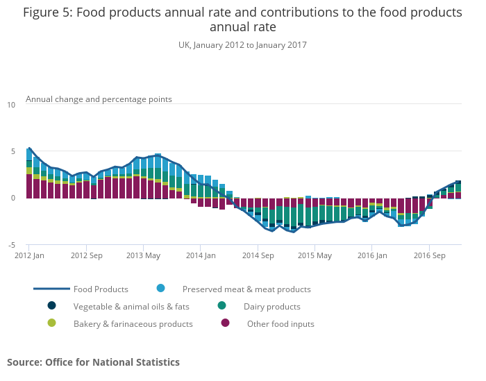 Factory gate prices (output prices) rose 3.5% on the year to January 2017, which is the seventh consecutive period of annual price increases and the highest they have been since December 2011.