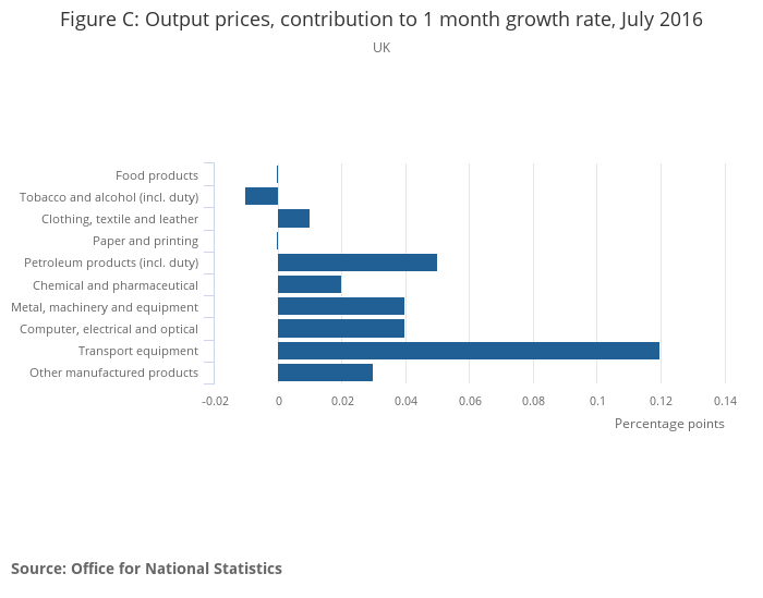 Download this table Table C: Output prices, 1 month change, July 2016, UK