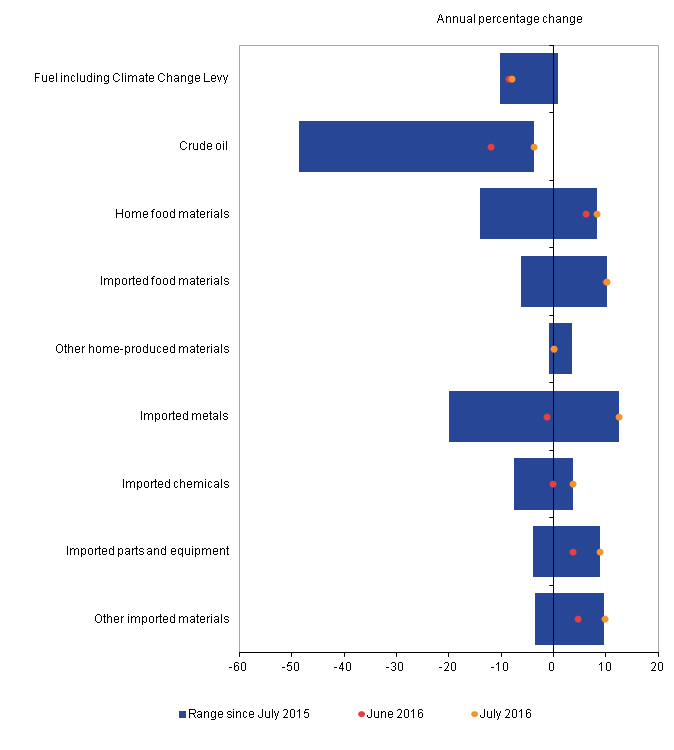 Download this table Table F: Input prices, 1 month change, July 2016 UK