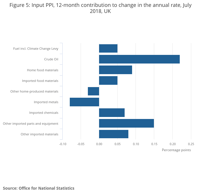 Figure 5: Input PPI, 12-month contribution to change in the annual rate, July 2018, UK