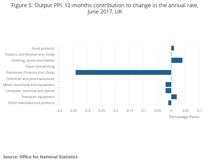 Figure 5: Output PPI, 12-months contribution to change in the annual rate, June 2017, UK