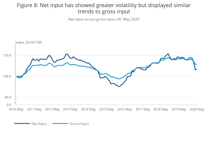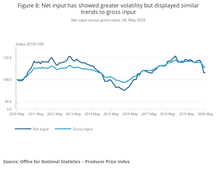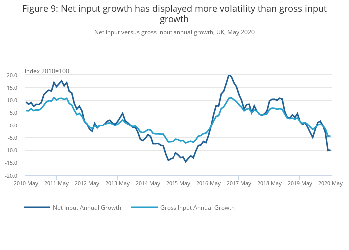 Net input versus gross input, UK, May 2020