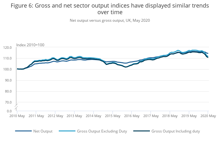 Net output versus gross output, UK, May 2020