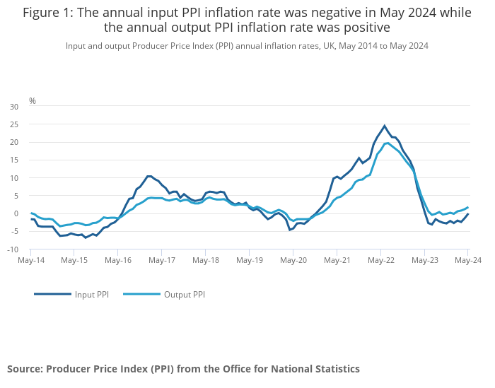 Office for National Statistics (ONS), released 19 June 2024, ONS website, statistical bulletin, Producer price inflation, UK: May 2024
