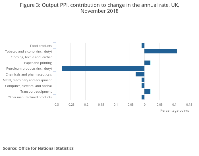 The headline rate of output inflation for goods leaving the factory gate was 3.1% on the year to November 2018, down from 3.3% in October 2018.