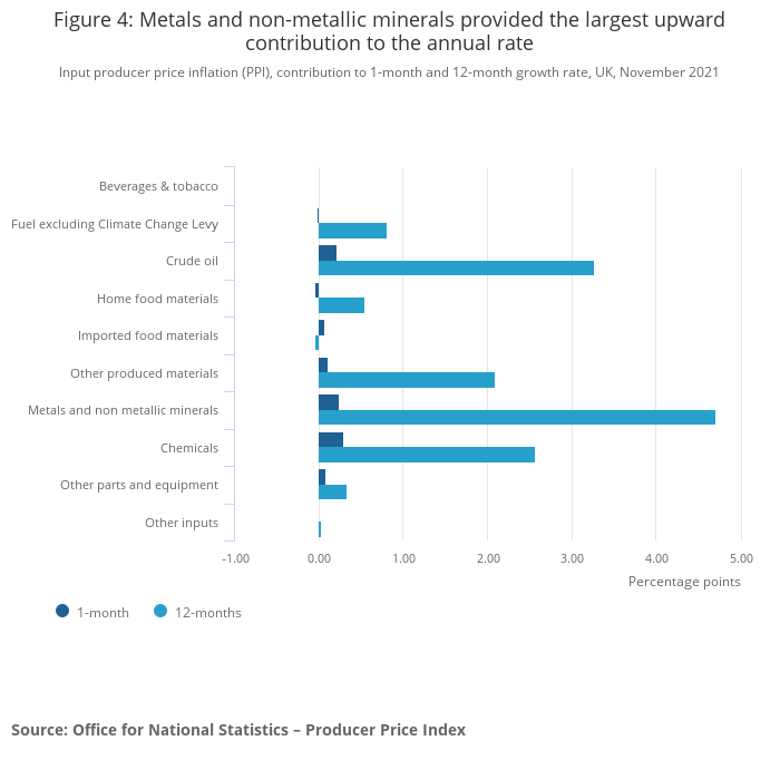 Input producer price inflation (PPI), contribution to change in the annual rate, UK, November 2021