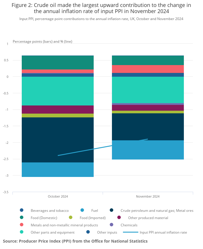 Figure 2: Crude oil made the largest upward contribution to the change in the annual inflation rate of input PPI in November 2024
