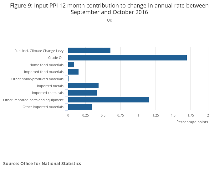 Figure 9: Input PPI 12 month contribution to change in annual rate between September and October 2016