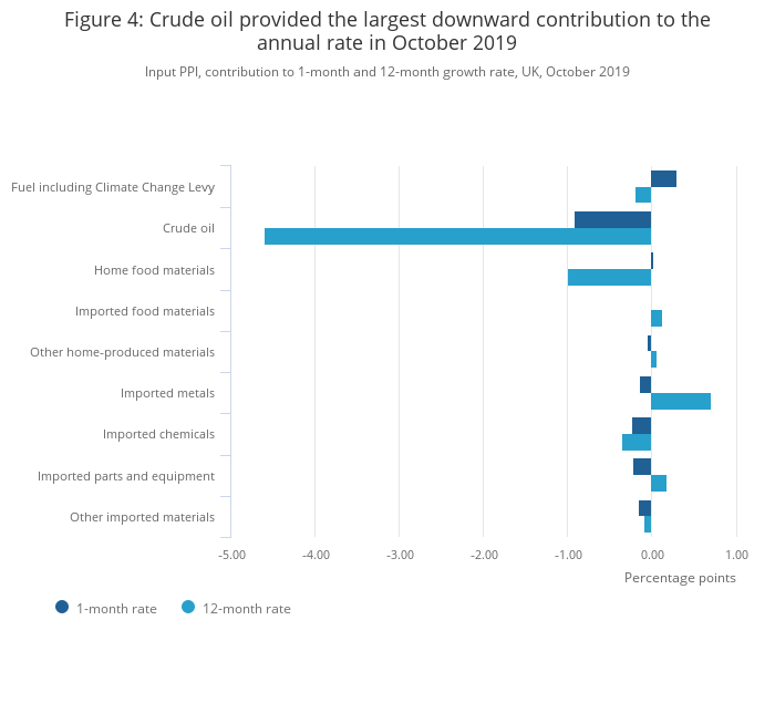 Input PPI, contribution to change in the annual rate, UK, October 2019