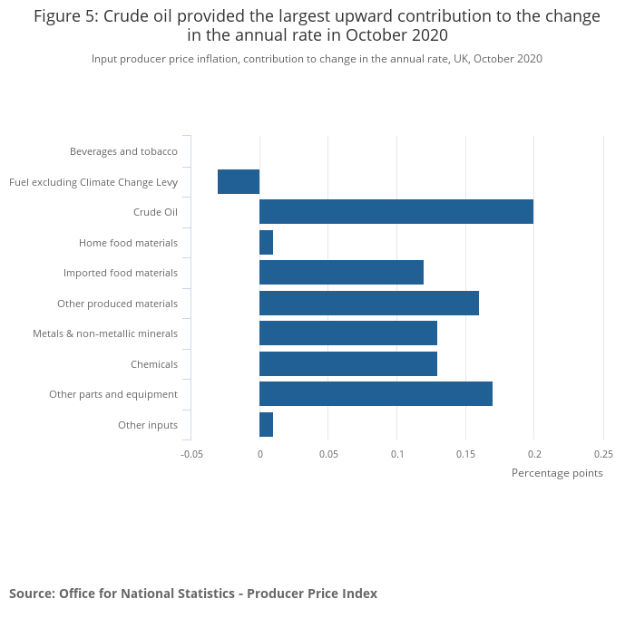 Output producer price inflation, contribution to change in the annual rate, UK, October 2020