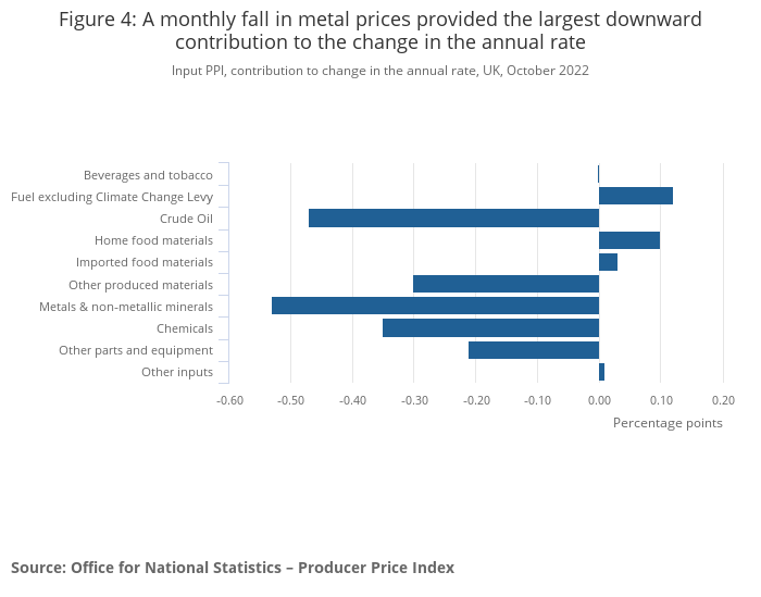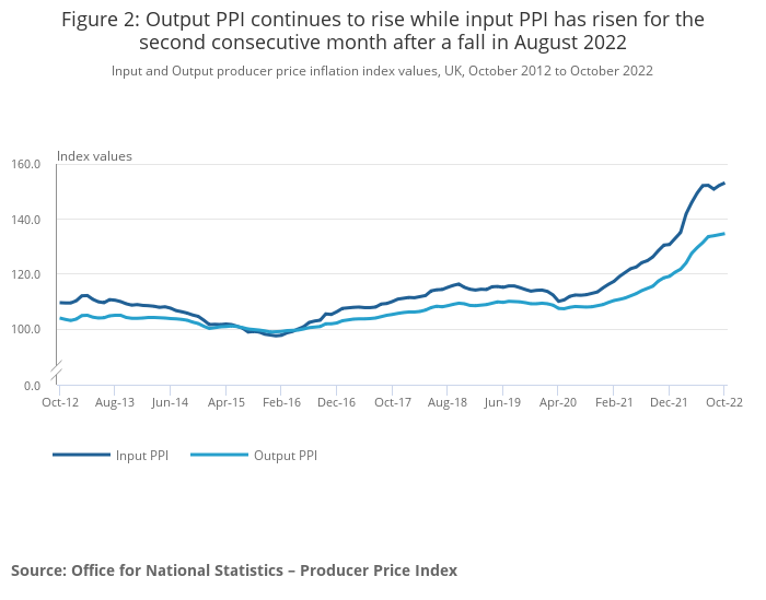 Office for National Statistics (ONS), released 16 November 2022, ONS website, statistical bulletin, Producer price inflation, UK: October 2022