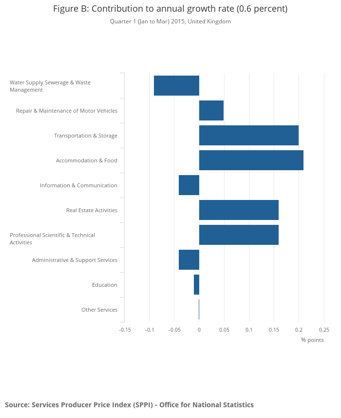 prices received by UK service providers increased 0.6% in the year to quarter 1 of 2015, up from an increase of 0.4% in quarter 4 of 2014