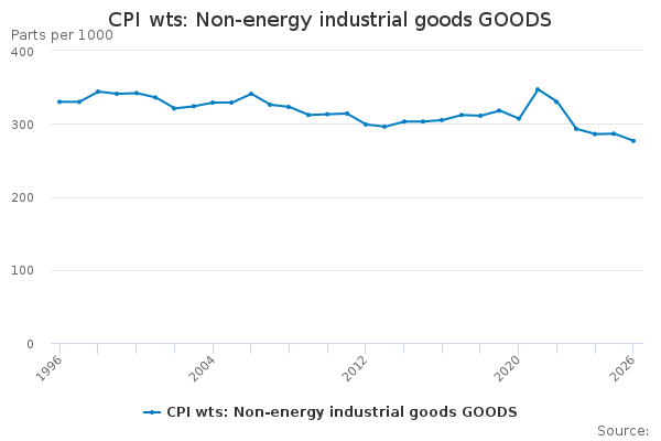 Download this time seriesCPI wts: Non-energy industrial goods GOODS