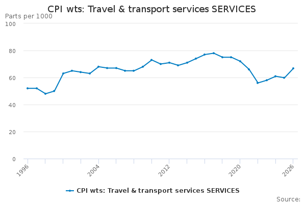 Download this time seriesCPI wts: Travel & transport services SERVICES