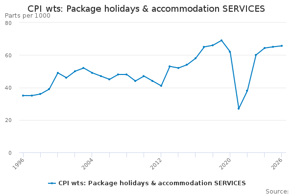 Download this time seriesCPI wts: Package holidays & accommodation SERVICES