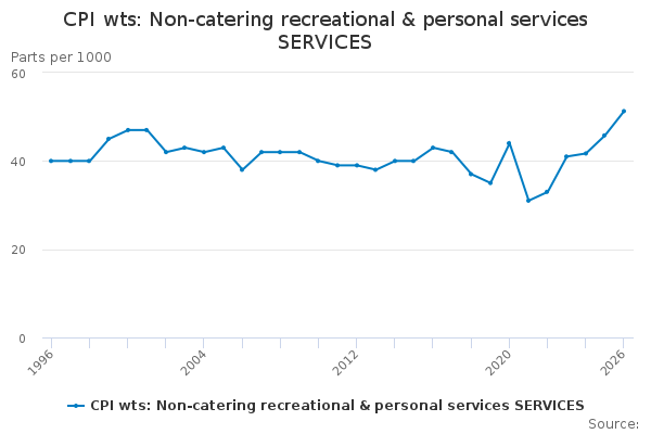 Download this time seriesCPI wts: Non-catering recreational & personal services SERVICES