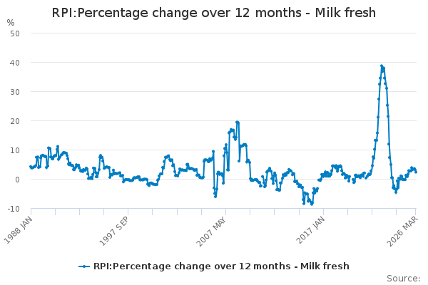 Download this time seriesRPI:Percentage change over 12 months - Milk fresh