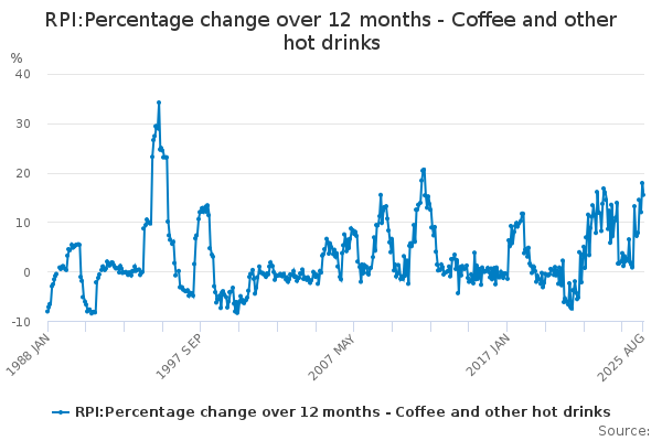 Download this time seriesRPI:Percentage change over 12 months - Coffee and other hot drinks