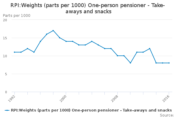 Download this time seriesRPI:Weights (parts per 1000) One-person pensioner - Take-aways and snacks
