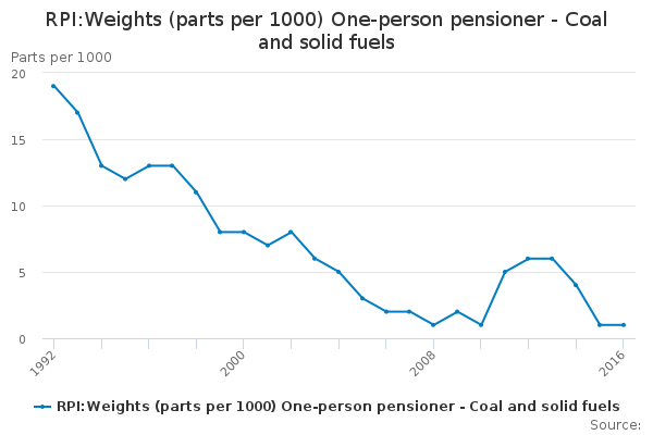 Download this time seriesRPI:Weights (parts per 1000) One-person pensioner - Coal and solid fuels