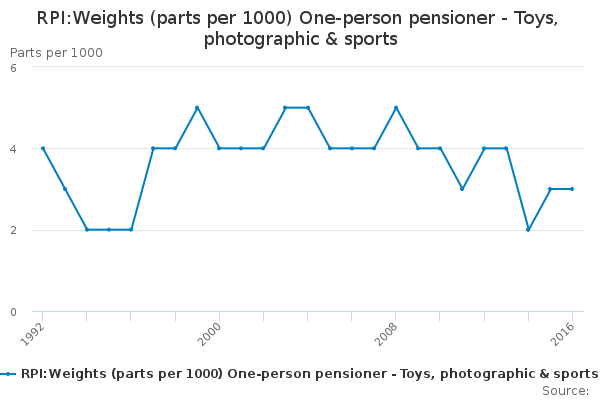Download this time seriesRPI:Weights (parts per 1000) One-person pensioner - Toys, photographic & sports
