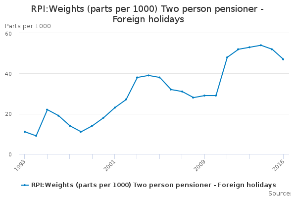 Download this time seriesRPI:Weights (parts per 1000) Two person pensioner - Foreign holidays