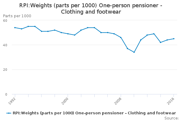 Download this time seriesRPI:Weights (parts per 1000) One-person pensioner - Clothing and footwear