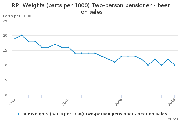 Download this time seriesRPI:Weights (parts per 1000) Two-person pensioner - beer on sales