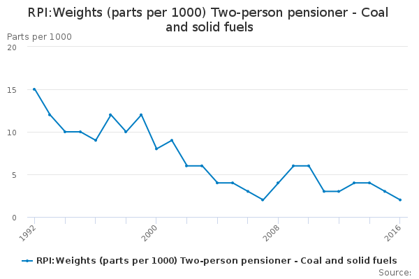 Download this time seriesRPI:Weights (parts per 1000) Two-person pensioner - Coal and solid fuels