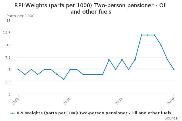 Download this time seriesRPI:Weights (parts per 1000) Two-person pensioner - Oil and other fuels
