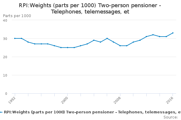 Download this time seriesRPI:Weights (parts per 1000) Two-person pensioner - Telephones, telemessages, et