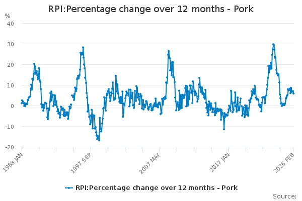 Download this time seriesRPI:Percentage change over 12 months - Pork