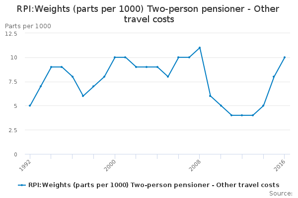 Download this time seriesRPI:Weights (parts per 1000) Two-person pensioner - Other travel costs