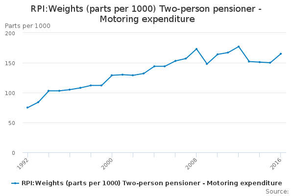 Download this time seriesRPI:Weights (parts per 1000) Two-person pensioner - Motoring expenditure