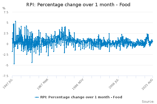 Download this time seriesRPI: Percentage change over 1 month - Food