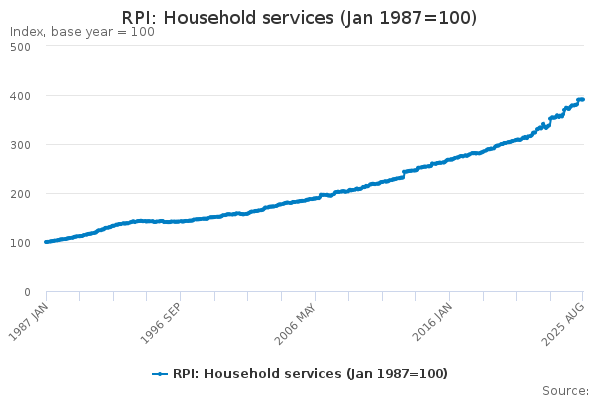 Download this time seriesRPI: Household services (Jan 1987=100)