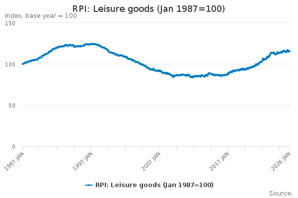 Download this time seriesRPI: Leisure goods (Jan 1987=100)