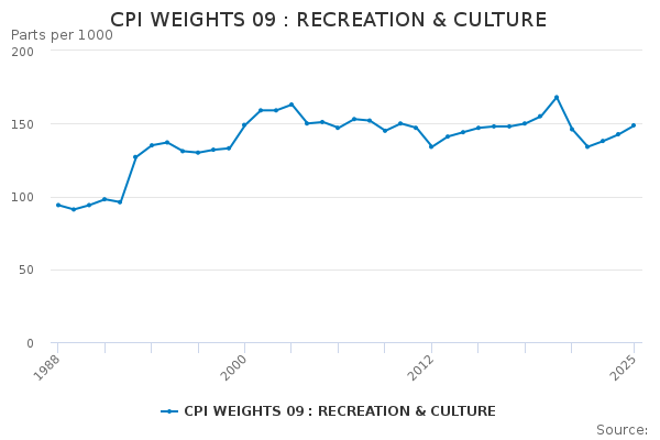 Download this time seriesCPI WEIGHTS 09 : RECREATION & CULTURE