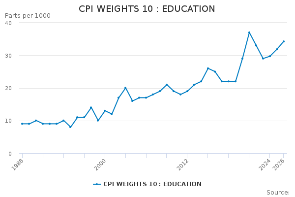 Download this time seriesCPI WEIGHTS 10 : EDUCATION