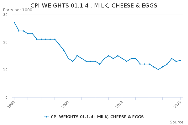 Download this time seriesCPI WEIGHTS 01.1.4 : MILK, CHEESE & EGGS