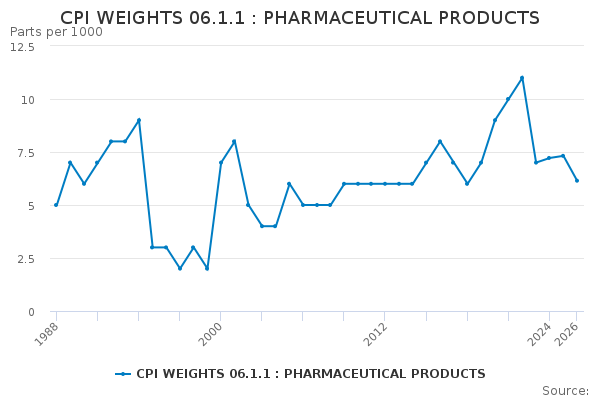 Download this time seriesCPI WEIGHTS 06.1.1 : PHARMACEUTICAL PRODUCTS