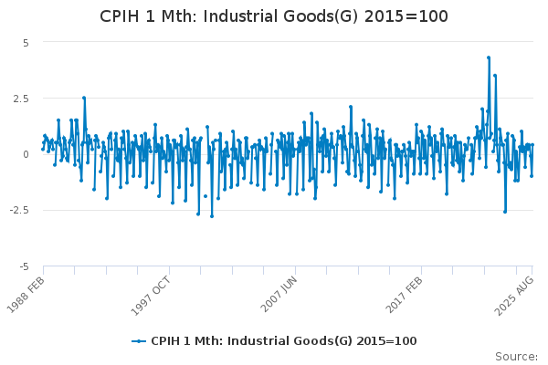 Download this time seriesCPIH 1 Mth: Industrial Goods(G) 2015=100