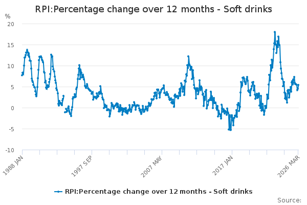 Download this time seriesRPI:Percentage change over 12 months - Soft drinks