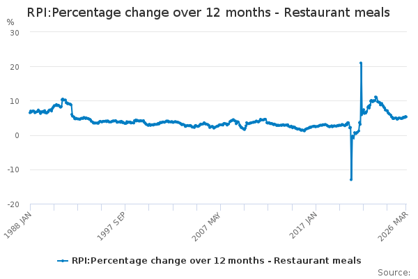 Download this time seriesRPI:Percentage change over 12 months - Restaurant meals