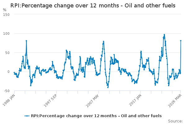Download this time seriesRPI:Percentage change over 12 months - Oil and other fuels